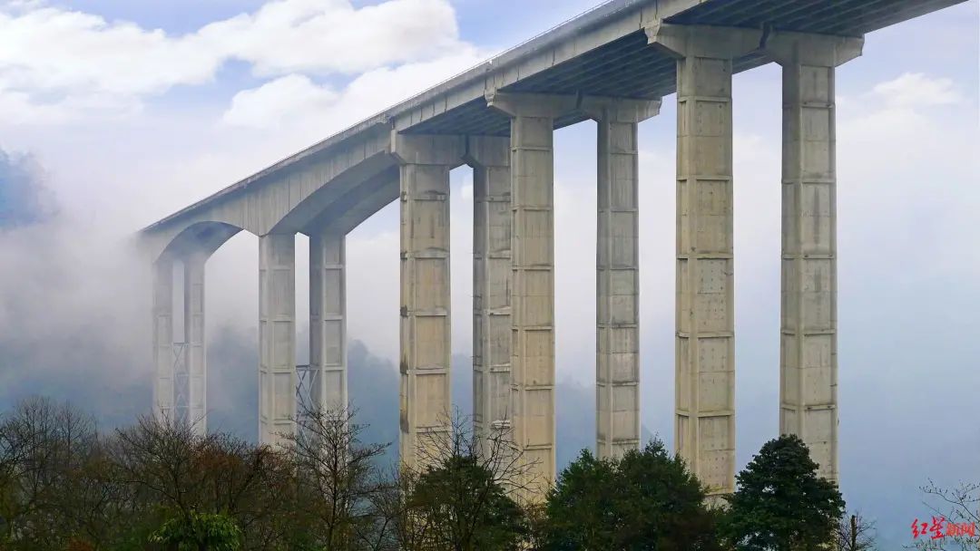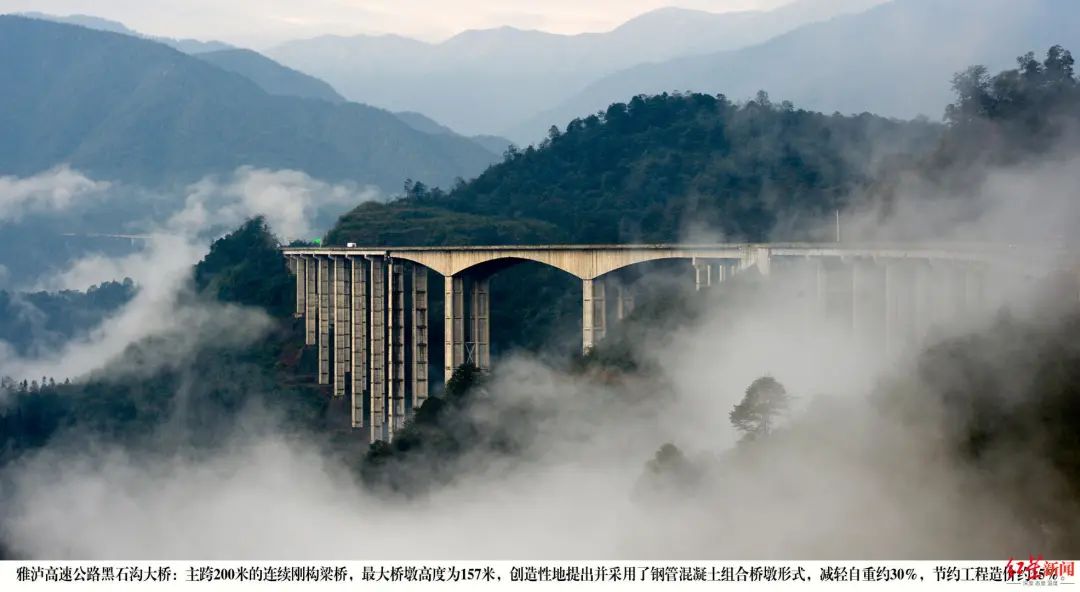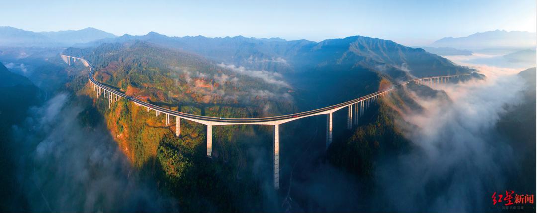 还值得一提的是,全线桥梁多达278座,穿越的地震带最高烈度达9度。腊八斤大桥主桥上部结构采用连续钢构桥,桥梁高度271米,最大墩高182.5米,至今仍为“世界第一高墩”。钢混组合结构桥梁轻质高强,抗震性能高,同时又节约资源。